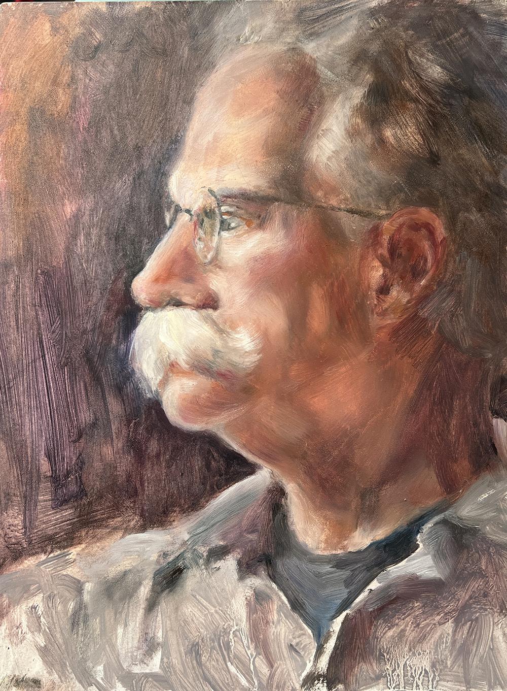 I was invited to paint for a day with the Putney Painters —to paint a portrait. Filled with fear of doing something I'd never tried before and of the prospect of doing it among amazing painters, I was tempted to decline. But then the fog lifted. Why not start portrait painting among kind, experienced painters? How many opportunities like this might ever come my way again? The support kept me going. The light, the model, the whole day was wonderful. There is still so much for me to learn I'd but taken the first step. An unforgetable start.